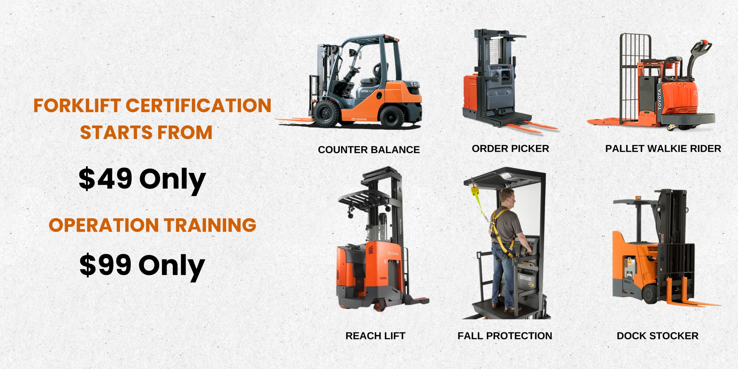 We believe in making quality training accessible to everyone. That’s why we offer competitive rates, including New Operator Training at just $79 and Forklift Certification for only $39. Check out our pricing list for more details!